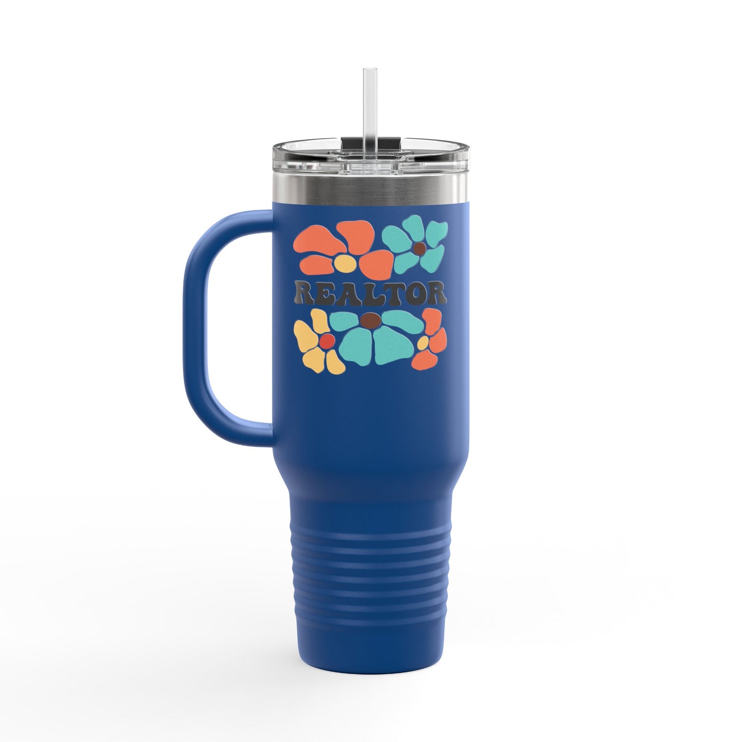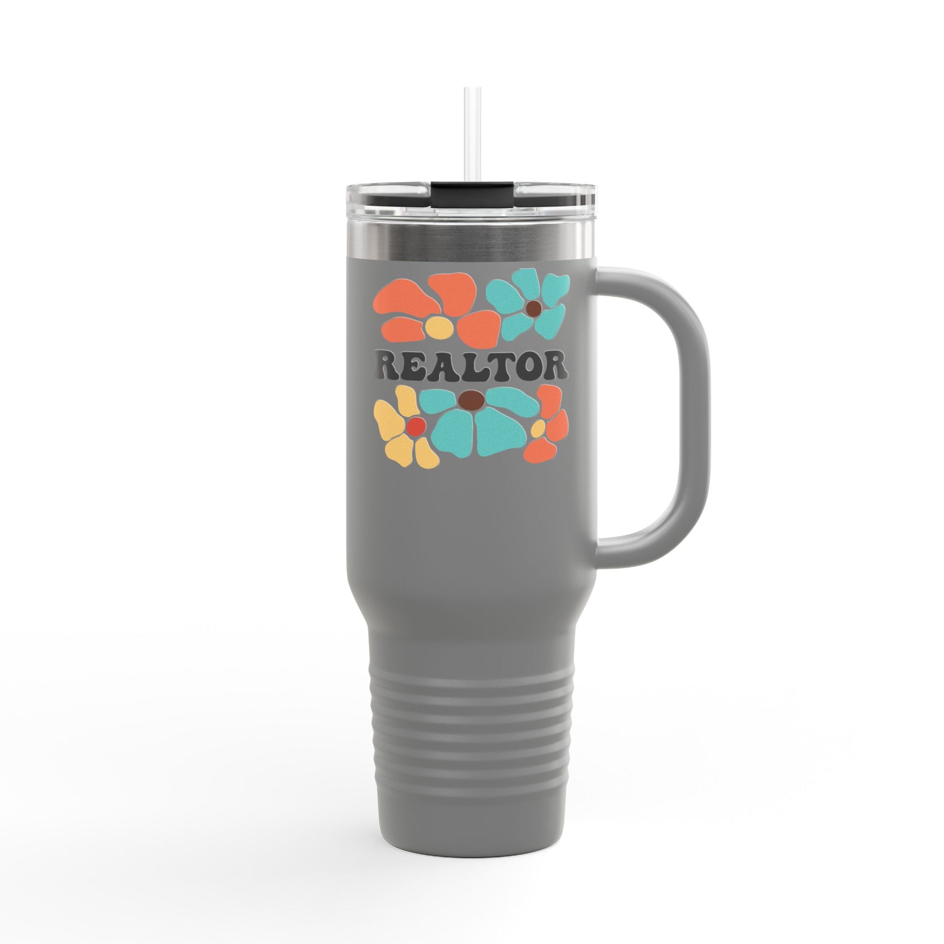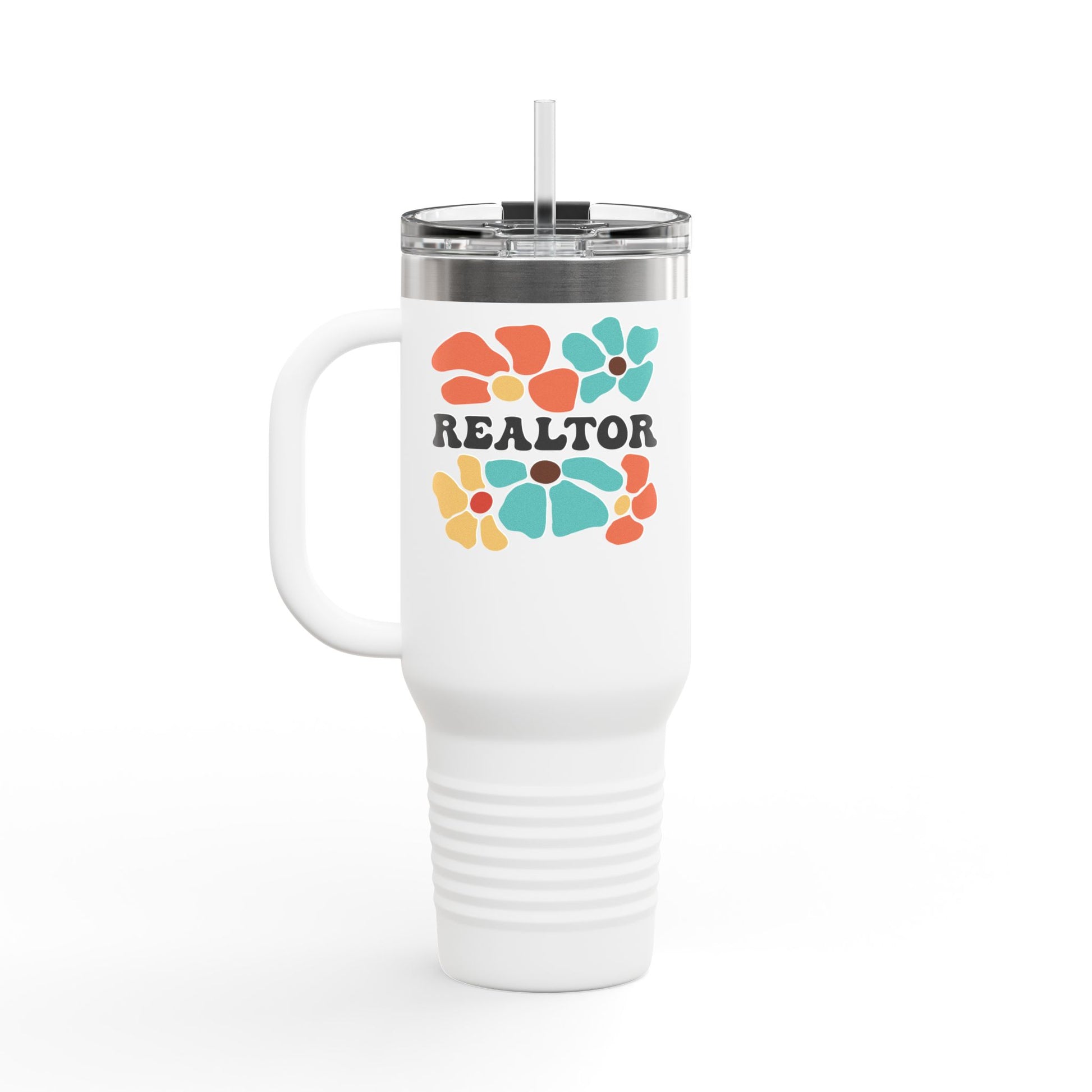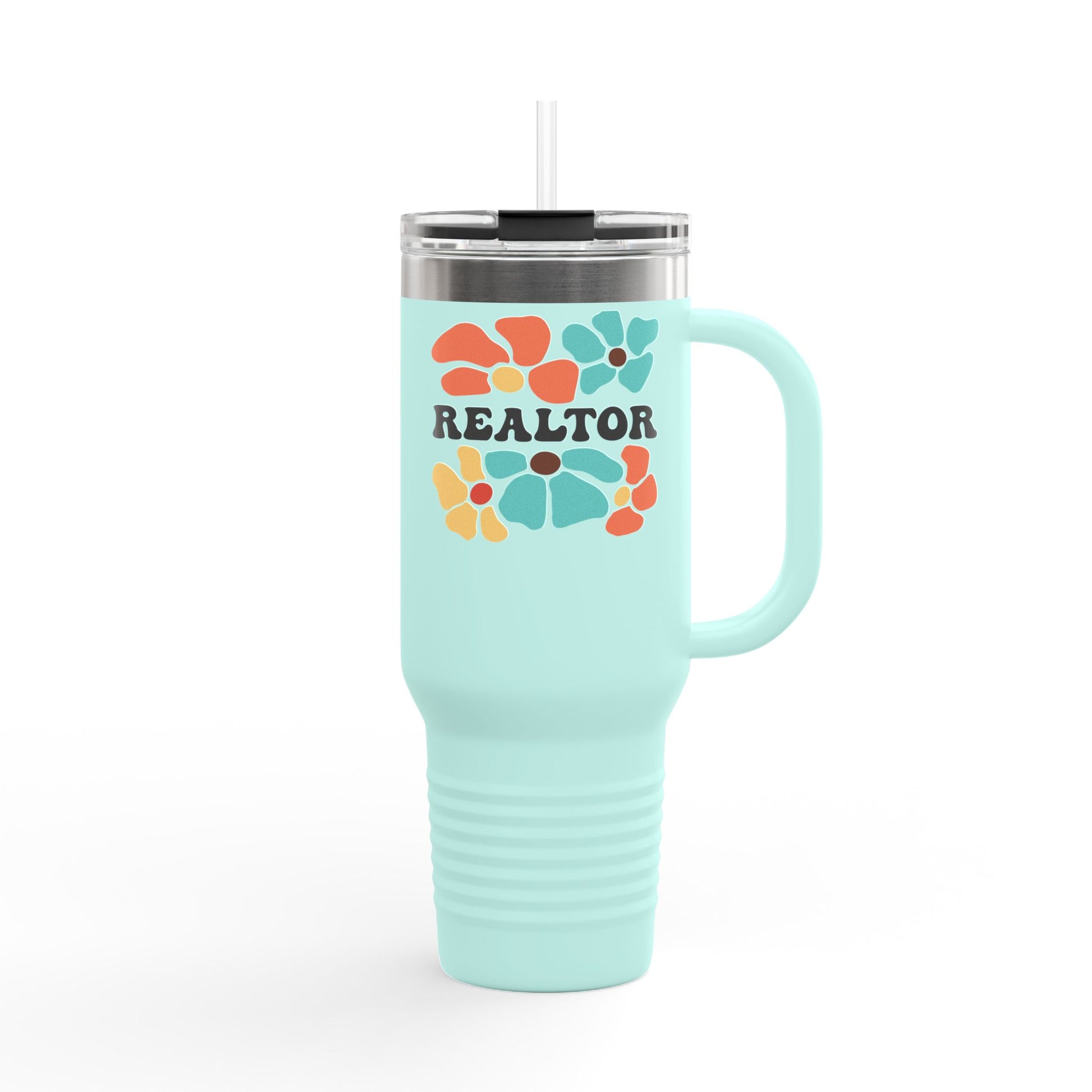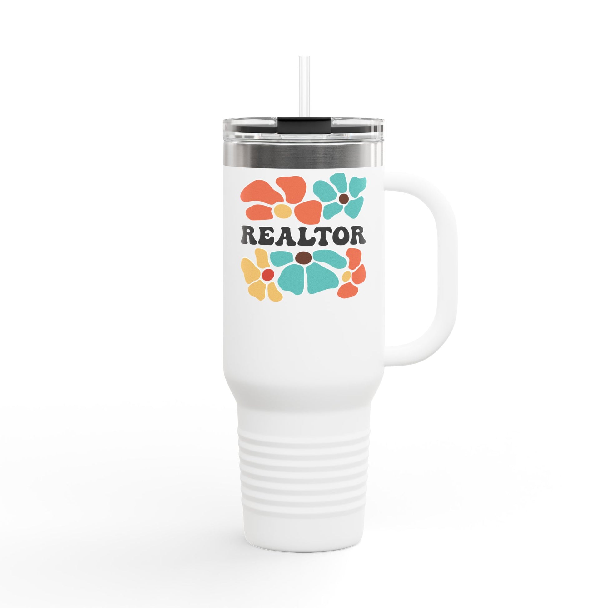 Some agents wear black. Others close in color. This bright and boho 40oz Floral Realtor Tumbler brings fun to your fuel with bold flowers and a confident “REALTOR” across the front.