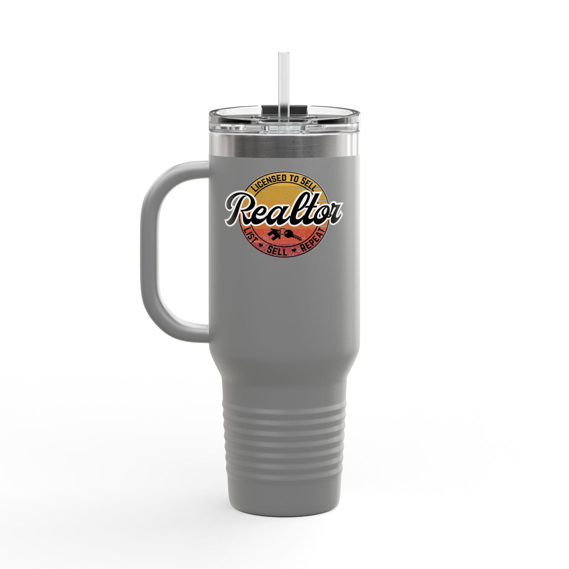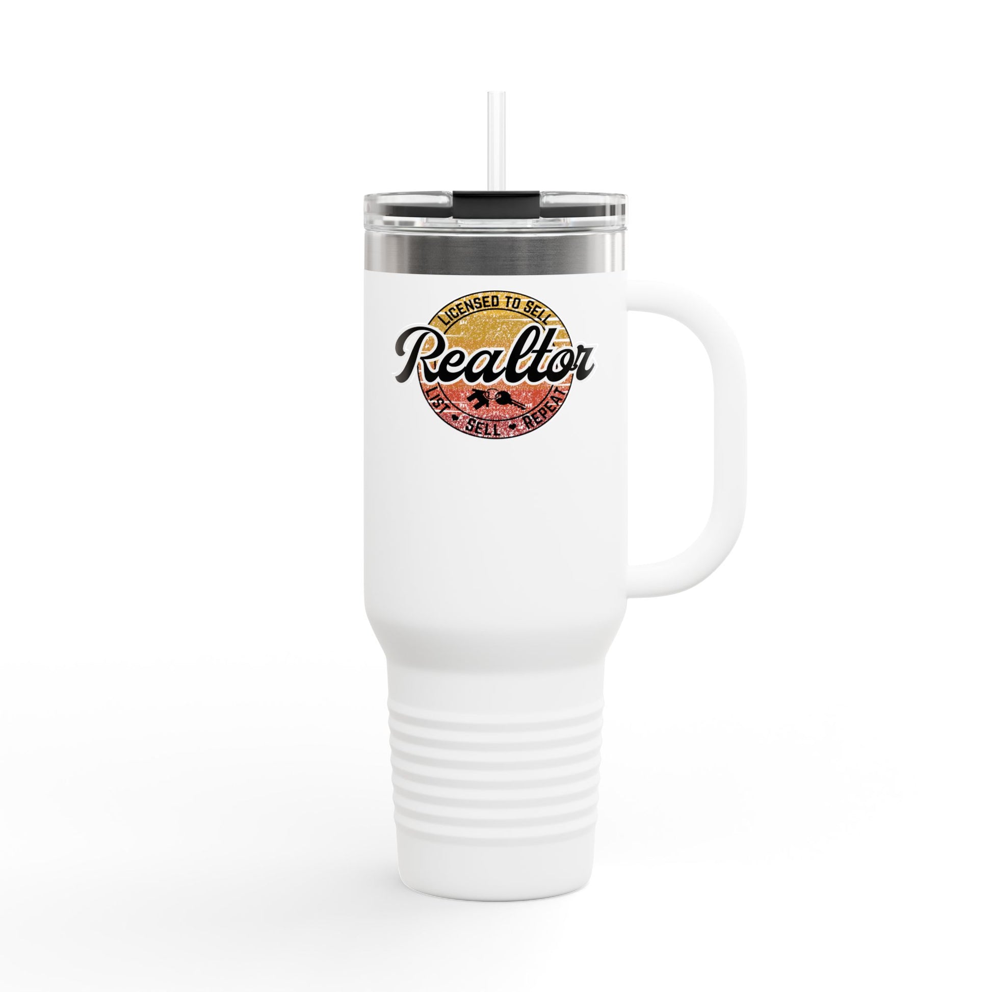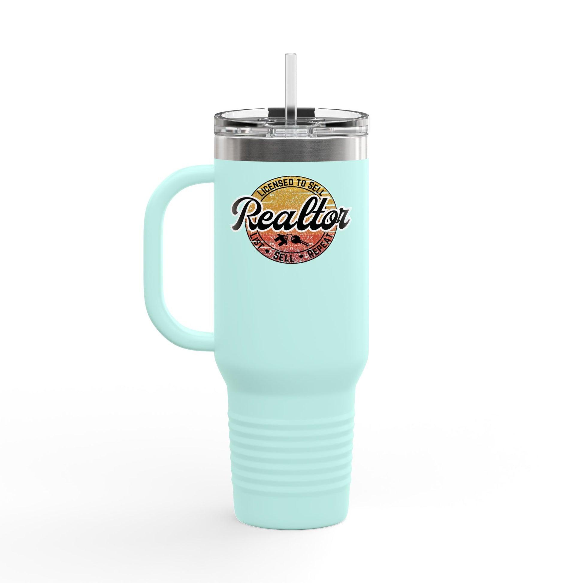 Real estate isn’t just a job, it’s a lifestyle — and this 40oz tumbler proves you’re Licensed to Sell. Featuring a sun-faded vintage badge and the rally cry “List. Sell. Repeat,” this tumbler is made for agents who hustle sunrise to sunset.