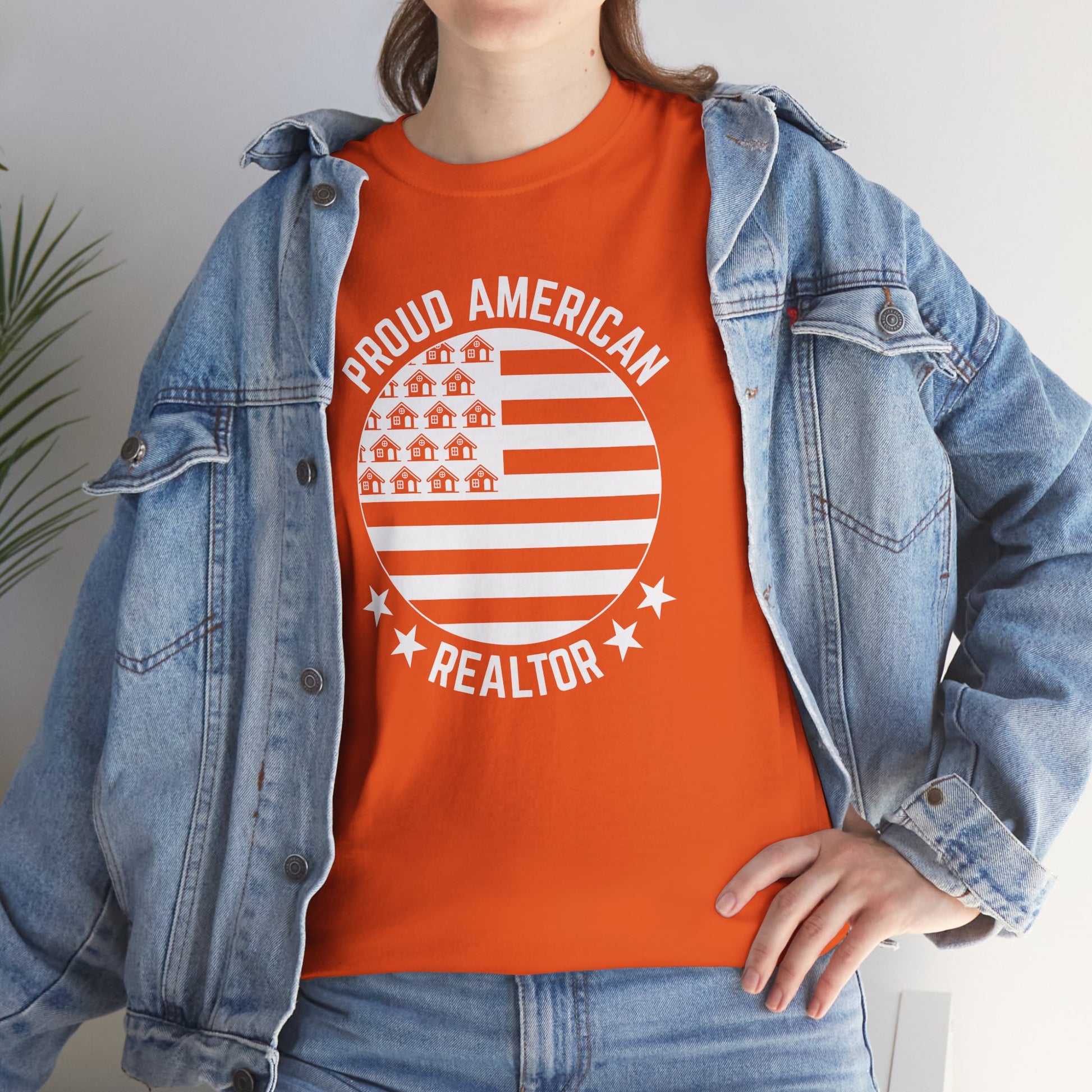 “Proud American Realtor” lettering and stars for patriotic impact