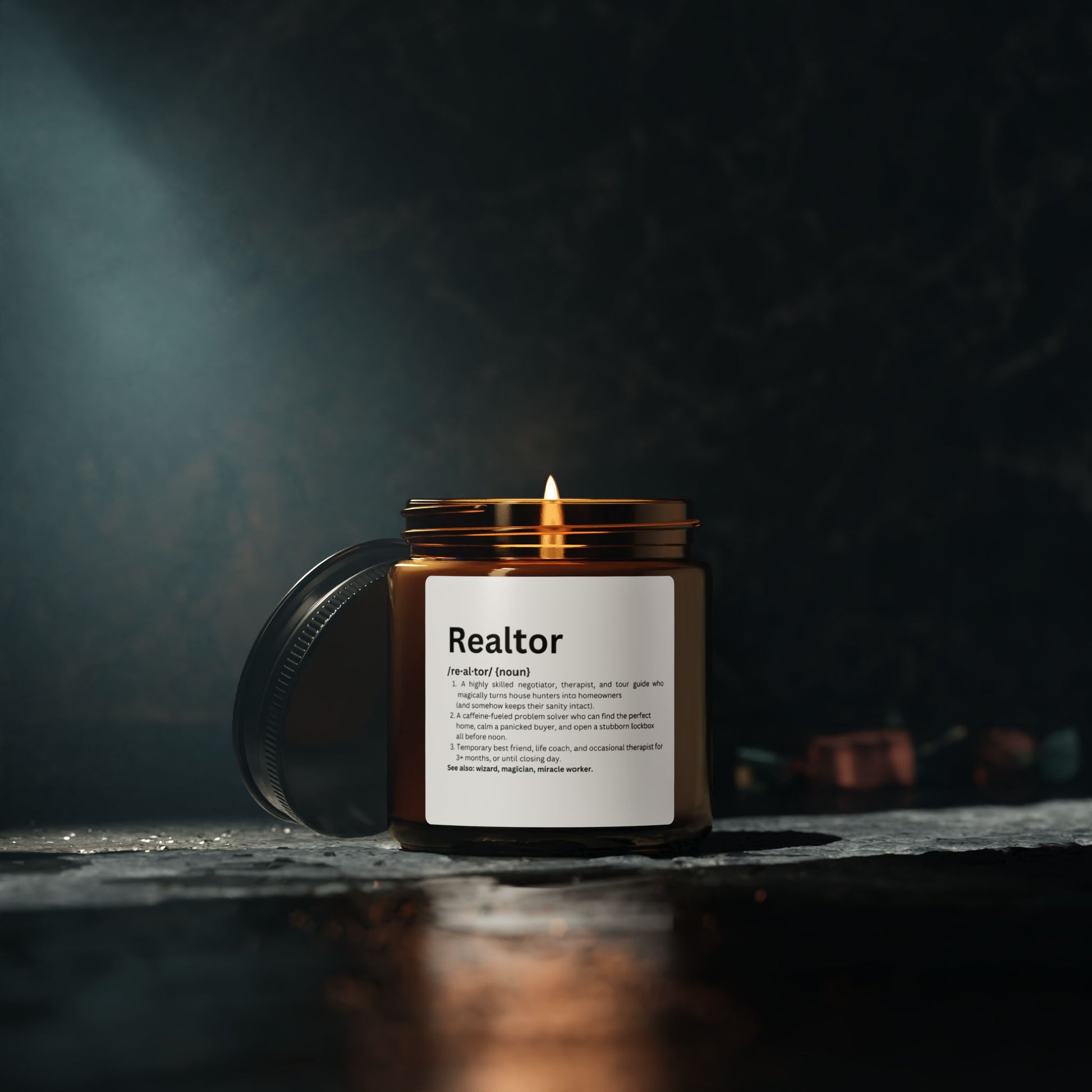 Realtor Definition Candle – Funny Real Estate Gift for Agents & Brokers | Amber Jar Soy Candle
