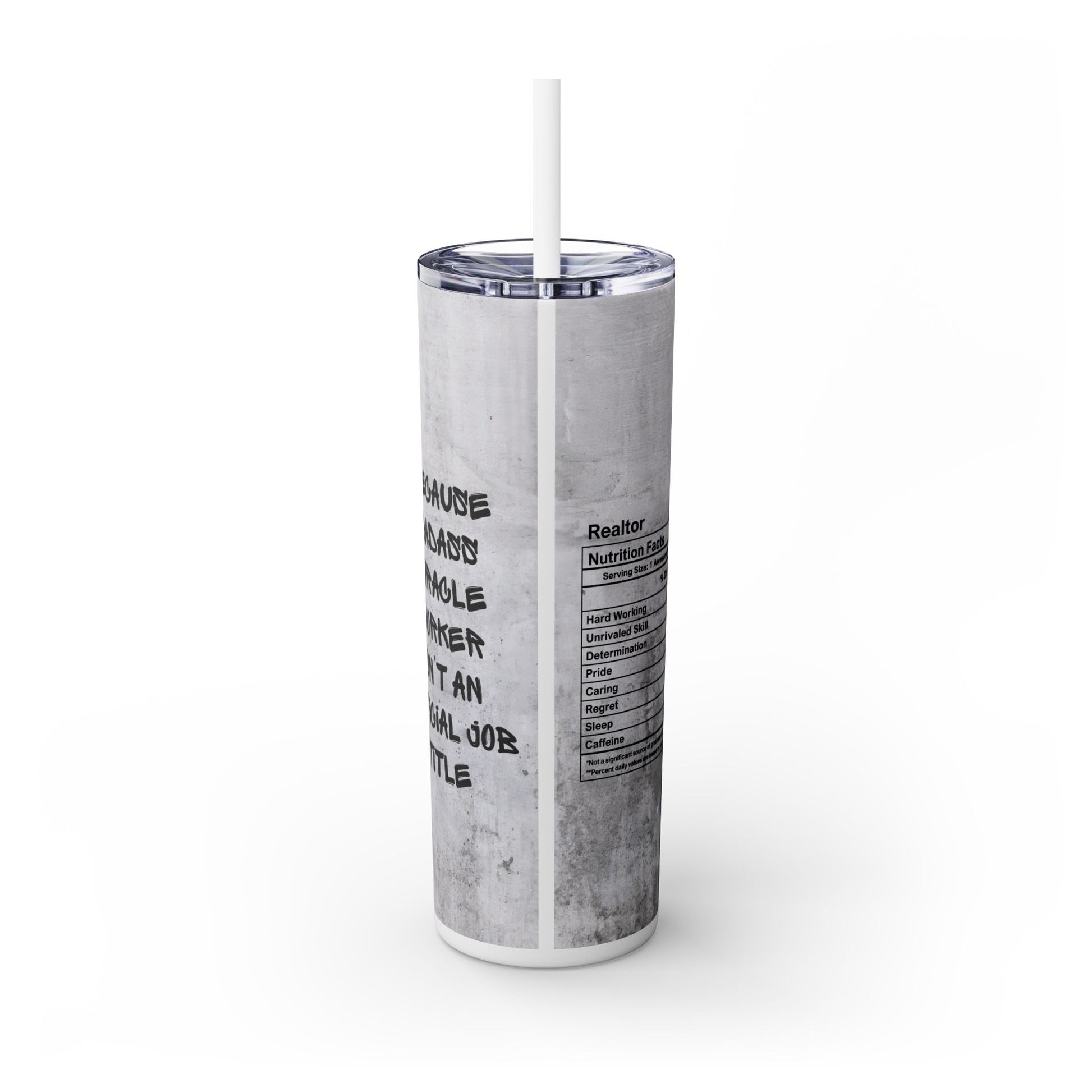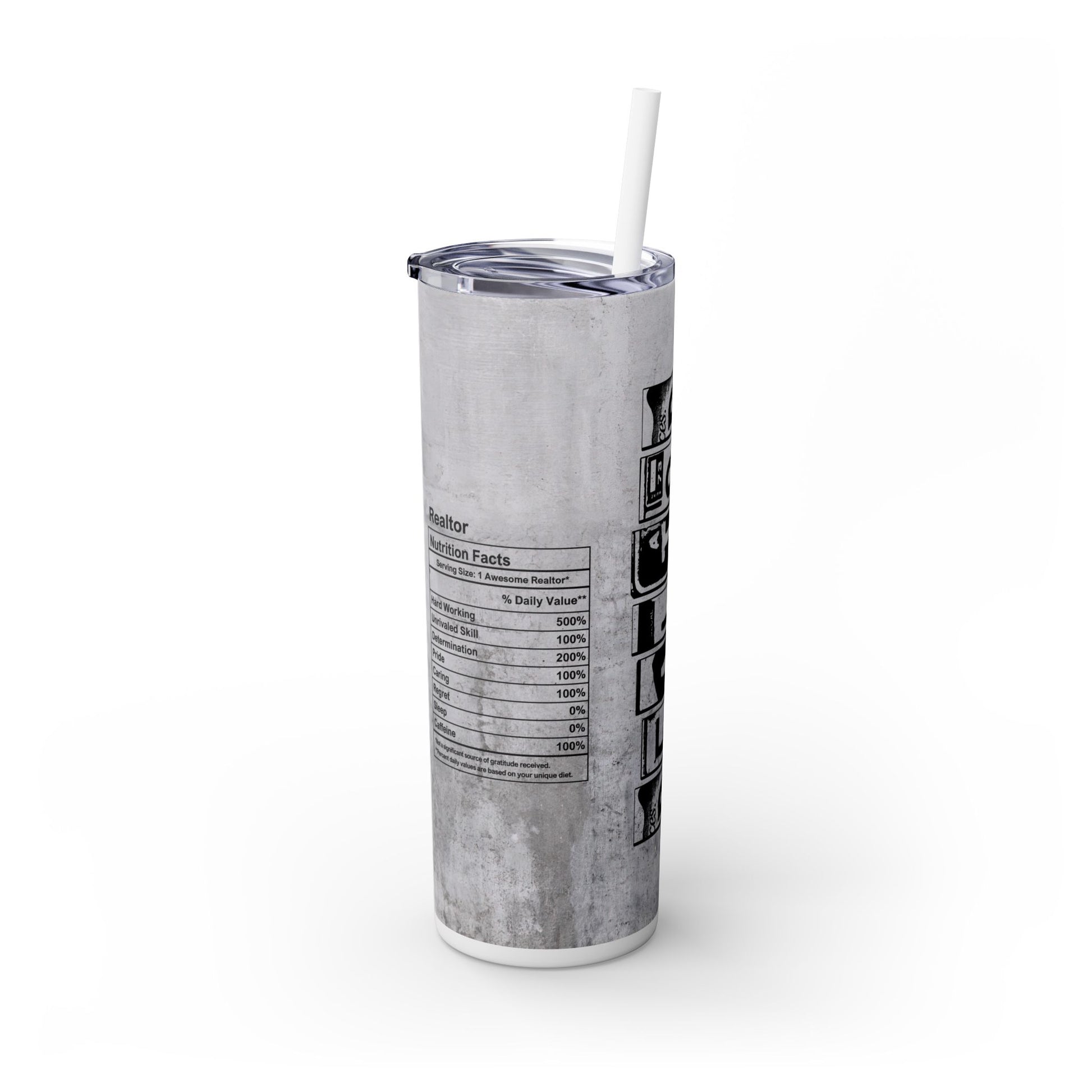 Realtor Nutrition Facts Tumbler – 20 oz Stainless Steel Mug with Bold Quote